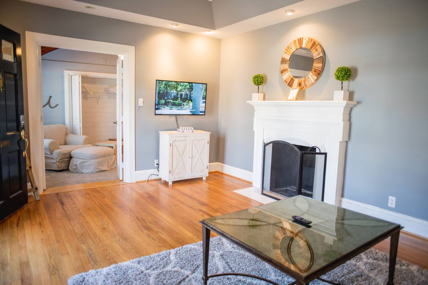 The other side of the house is another private Airbnb that guests will possibly be in during your stay. There is an unused bedroom that we use for cleaning supplies that is between you and the other part of the house. No walls are shared with the other side, the smaller side is so far removed from yours that you literally can't hear a screaming baby. The ONLY shared part of the property is the backyard fire pit that both private sides of the property can enjoy together if they'd like!
