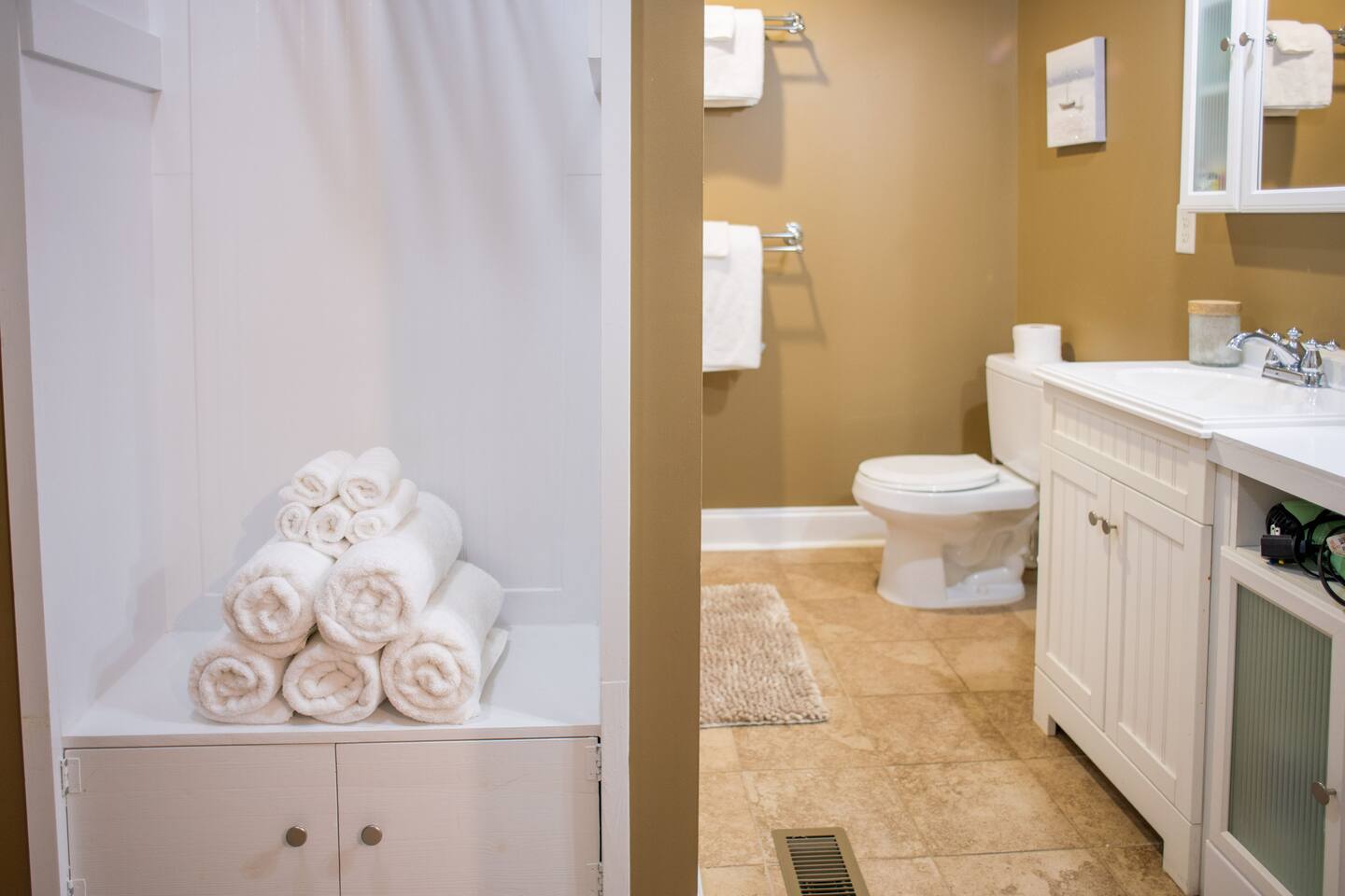 The other side of the house is another private Airbnb that guests will possibly be in during your stay. There is an unused bedroom that we use for cleaning supplies that is between you and the other part of the house. No direct walls are shared with the other side, making the separation between each other our focus point when we set up things in this property. The ONLY shared part of the property is the backyard fire pit that both private sides of the property can enjoy together if they'd like!